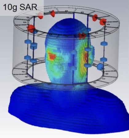 We use electromagnetic models to simulate the RF waves coming off the coil, then apply realistic human tissue models—accounting for different genders, ages, and BMIs—to calculate the heat generated at every location. The worst-case scenario is then compared against legal limits for heat absorption (e.g., for experimental head scans, no more than \(20\text{W/kg}\) in any \(10\text{g}\) of tissue averaged over 6 minutes). These limits are based on conservative models designed to ensure body temperature remains safe.
